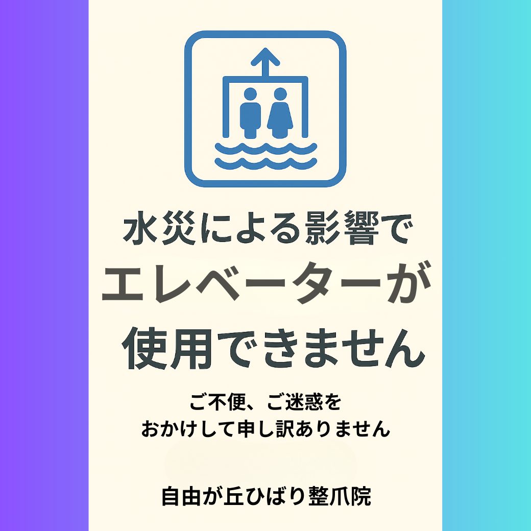水災による影響で、現在エレベーターが使用できません。