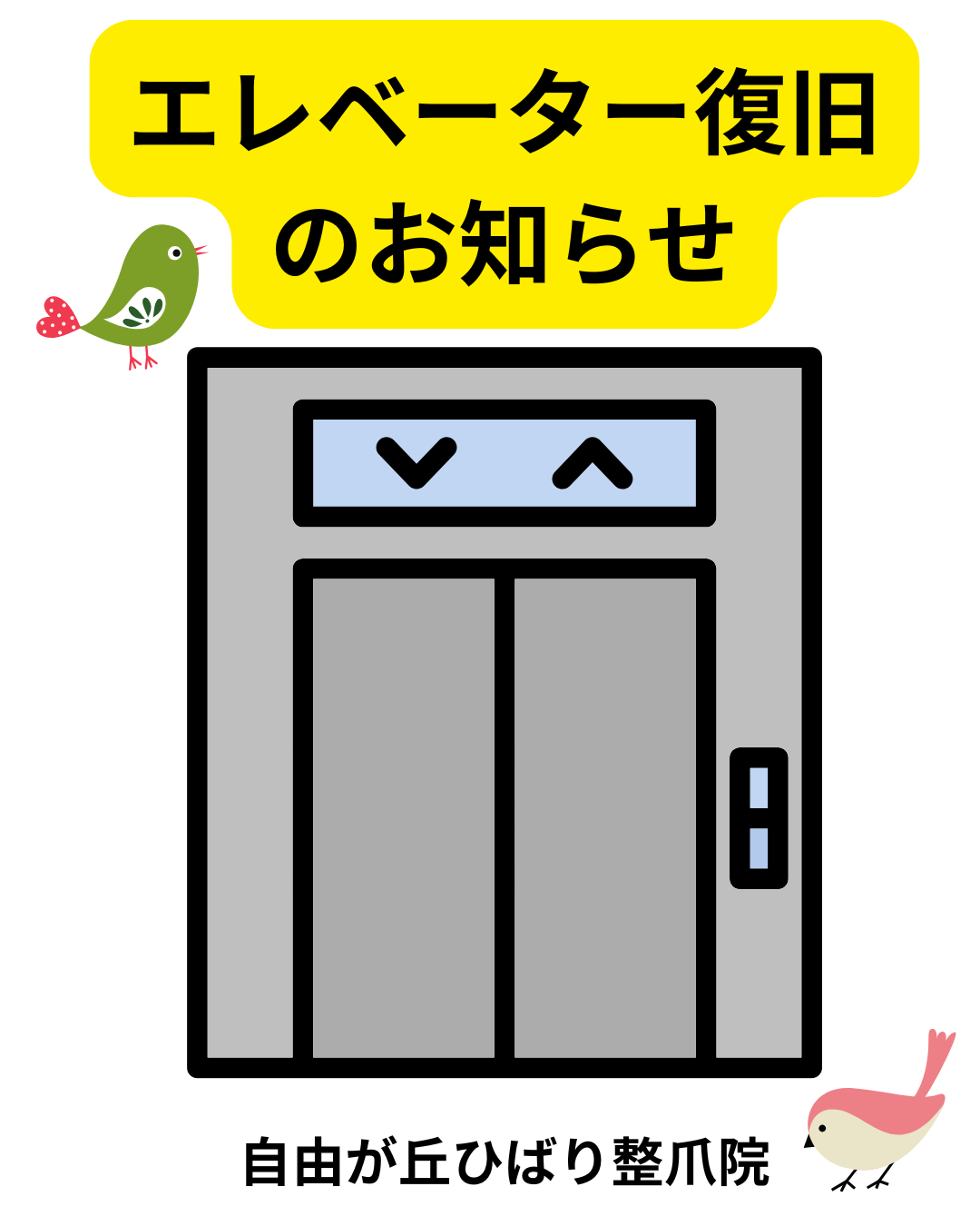 エレベーター復旧のお知らせ